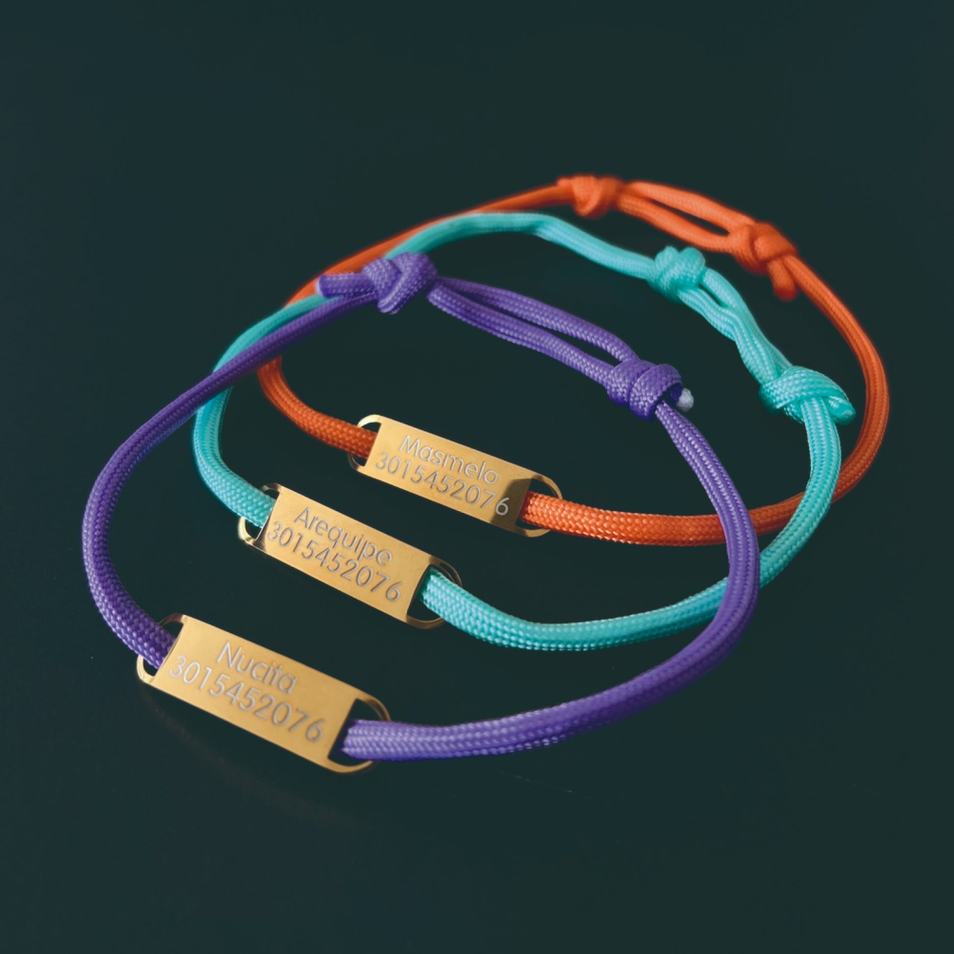Su material es cordón nylon, que le permitirá estar siempre identificado sin el peso de un collar.